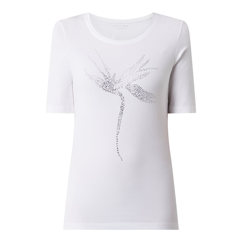 T-shirt damski Christian Berg Women, Mieszanka bawełny i elastanu , Taliowany krój , Okrągły dekolt , Kamienie stras , Długość tyłu w rozmiarze 36: 59 cm