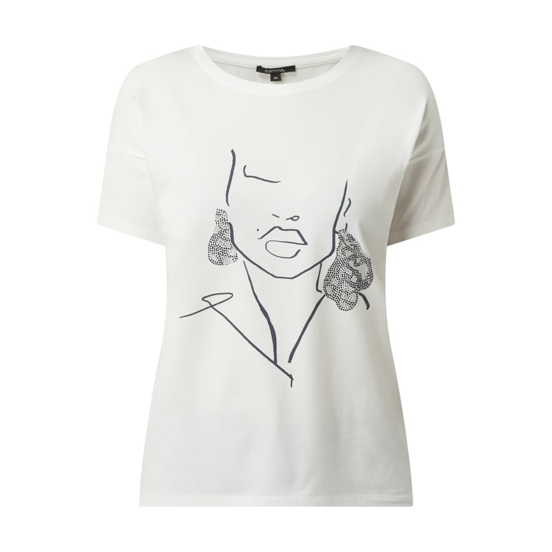 T-shirt damski comma , Mieszanka modalu z dodatkiem bawełny i streczu , Luźny krój , Okrągły dekolt , Obniżone ramiona , Nadruk , Kamienie stras , Długość tyłu w rozmiarze 36: 55 cm