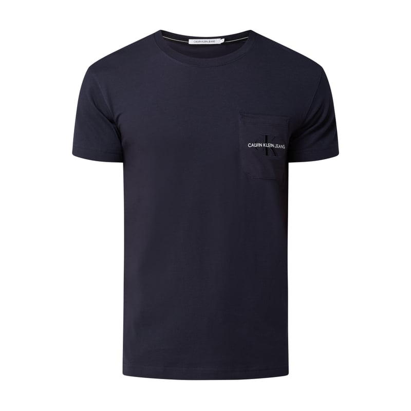 T-shirt męski Calvin Klein Jeans, Czysta bawełna , Prosty krój , Okrągły dekolt , Kieszeń na piersi z wyhaftowanym logo, Długość tyłu w rozmiarze M: 72 cm