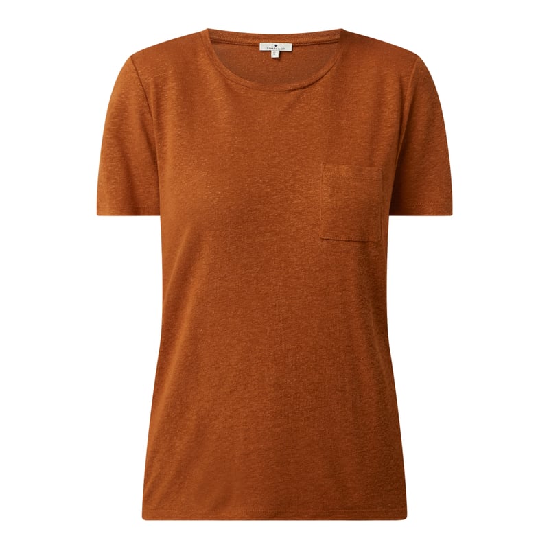 T-shirt damski TOM TAILOR, Mieszanka wiskozy i lnu , Luźny krój , Okrągły dekolt , Kieszeń na piersi , Długość tyłu w rozmiarze S: 65 cm