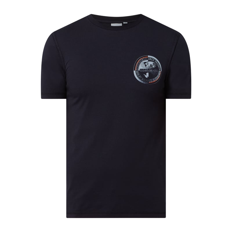 T-shirt męski Napapijri, Czysta bawełna , Prosty krój , Okrągły dekolt , Nadruki z logo, Długość tyłu w rozmiarze M: 69,5 cm