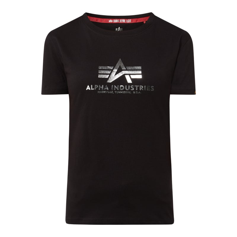 T-shirt damski Alpha Industries, Czysta bawełna , Taliowany krój , Okrągły dekolt , Logo z efektem metalicznym , Długość tyłu w rozmiarze S: 58 cm