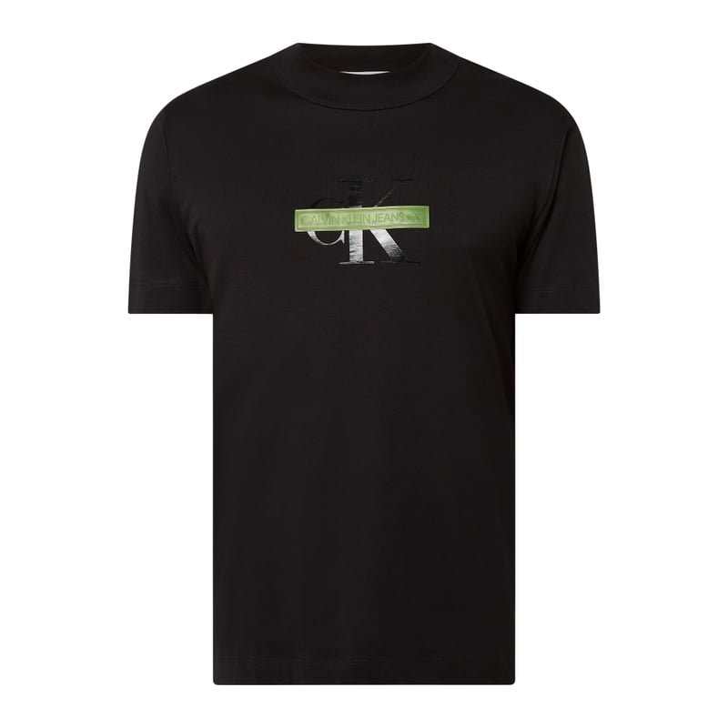 T-shirt męski Calvin Klein Jeans , Czysta bawełna , Prosty krój, Stójka, Logo, Długość tyłu w rozmiarze M: 69 cm