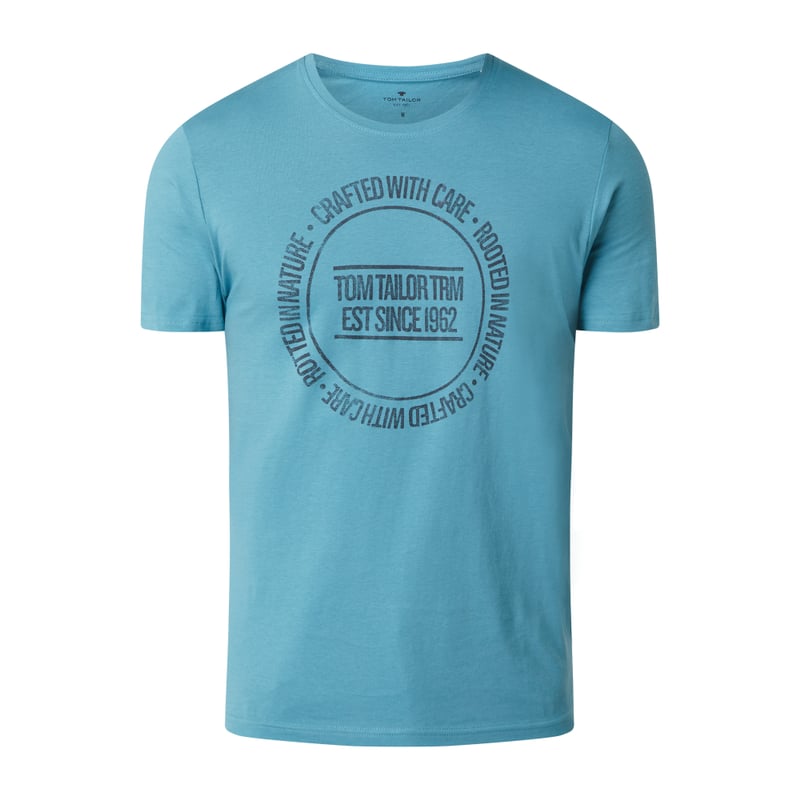 T-shirt męski TOM TAILOR, Czysta bawełna, Prosty krój , Okrągły dekolt , Nadruk z logo , Długość tyłu w rozmiarze M: 69 cm
