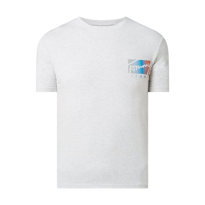 T-shirt męski Tommy Jeans, Mieszanka bawełny z dodatkiem streczu, Prosty krój, Nadruk z logo, Okrągły dekolt z prążkowanego ściągacza, Długość tyłu w rozmiarze M: 68 cm