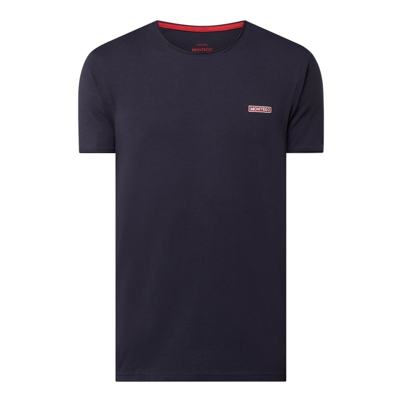 T-shirt męski MONTEGO, Mieszanka bawełny, Prosty krój, Okrągły dekolt, Logo, Długość tyłu w rozmiarze M: 68 cm