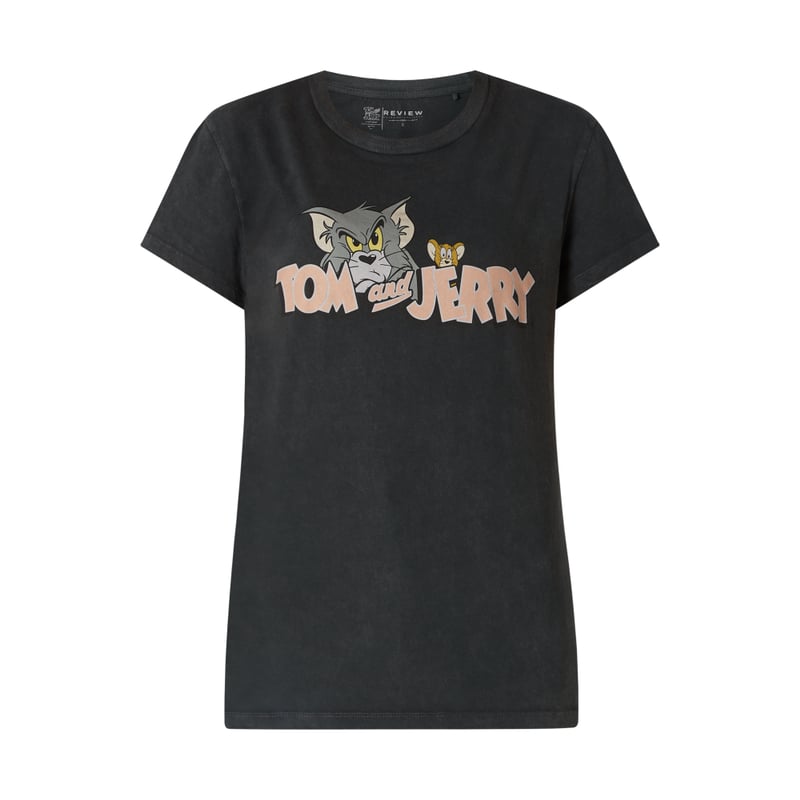 T-shirt damski REVIEW , Czysta bawełna , Lekko taliowany krój , Efekt sprania , Okrągły dekolt , Nadruk ‘Looney Tunes™’, Długość tyłu w rozmiarze S: 64 cm