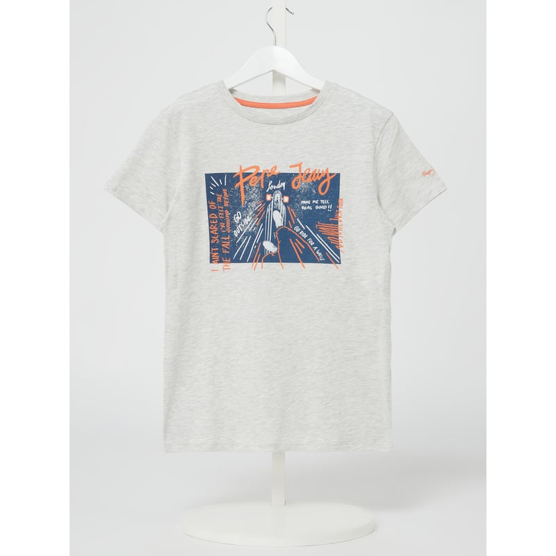 T-shirt młodzieżowy Pepe Jeans, Mieszanka bawełny i wiskozy, Prosty krój, Okrągły dekolt, Nadruk i logo, Długość tyłu w rozmiarze 152: 57 cm