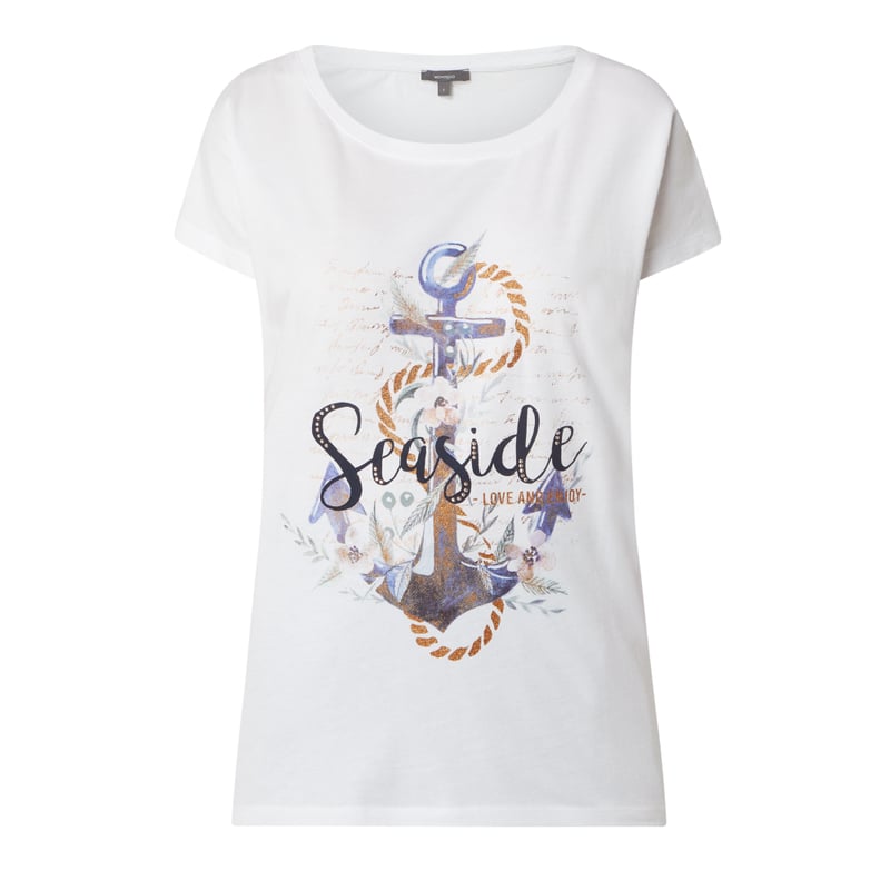 T-shirt damski MONTEGO , Mieszanka bawełny i wiskozy , Taliowany krój , Okrągły dekolt , Nadrukowany motyw kotwicy , Długość tyłu w rozmiarze S: 60 cm