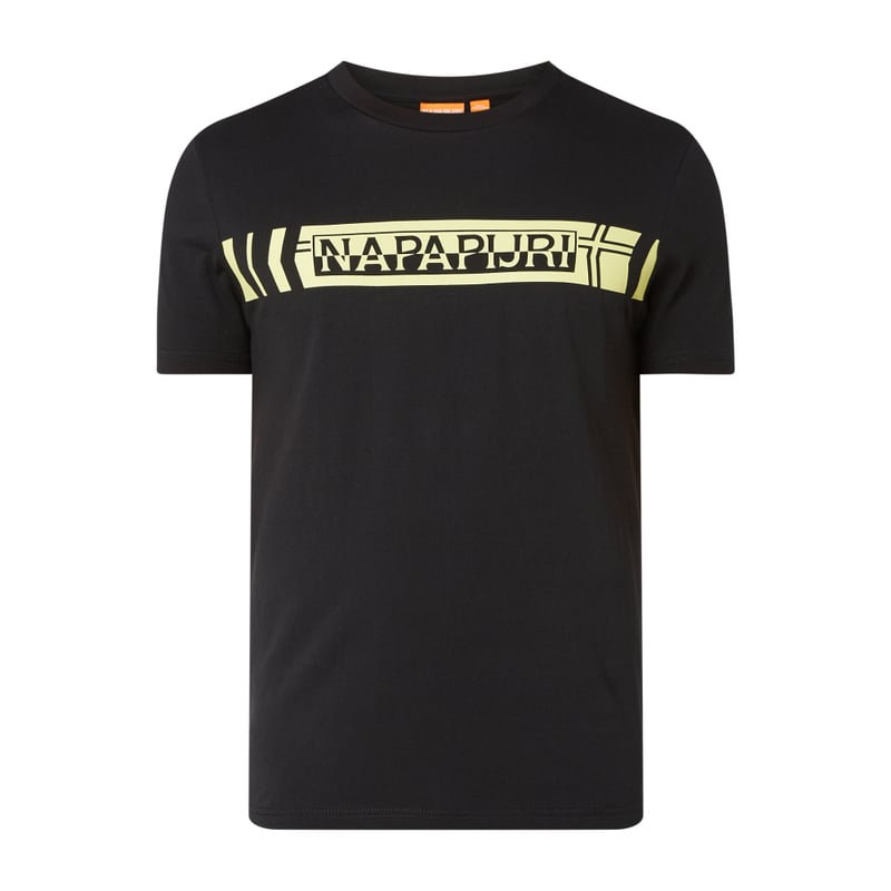 T-shirt męski Napapijri, Czysta bawełna , Prosty krój, Okrągły dekolt , Nadruk z logo , Długość tyłu w rozmiarze M: 67 cm