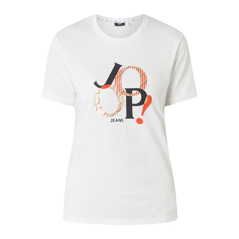 T-shirt damski JOOP! JEANSY, Czysta bawełna , Prosty krój , Okrągły dekolt , Nadruk z logo , Długość tyłu w rozmiarze 36: 62 cm