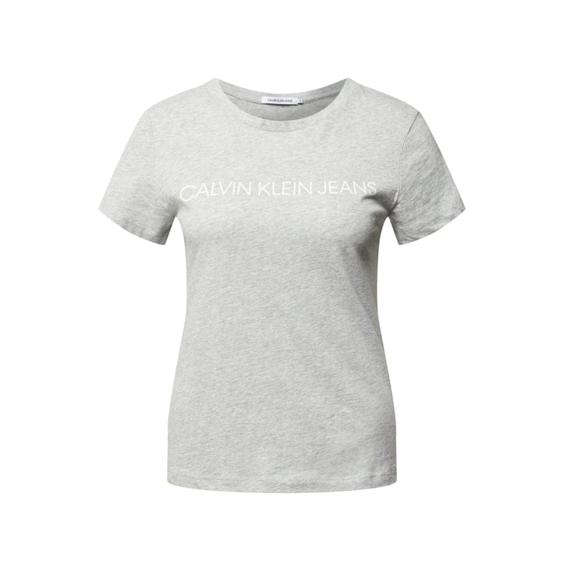 T-shirt damski Calvin Klein Jeans, Czysta bawełna, Taliowany krój, Okrągły dekolt, Nadruk z logo, Długość tyłu w rozmiarze S: 62 cm
