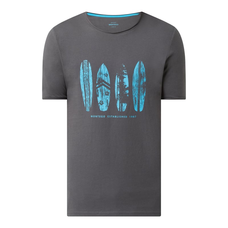 T-shirt męski MONTEGO, Czysta bawełna , Prosty krój , Okrągły dekolt , Nadruk z logo, Zrolowane brzegi, Długość tyłu w rozmiarze M: 67 cm