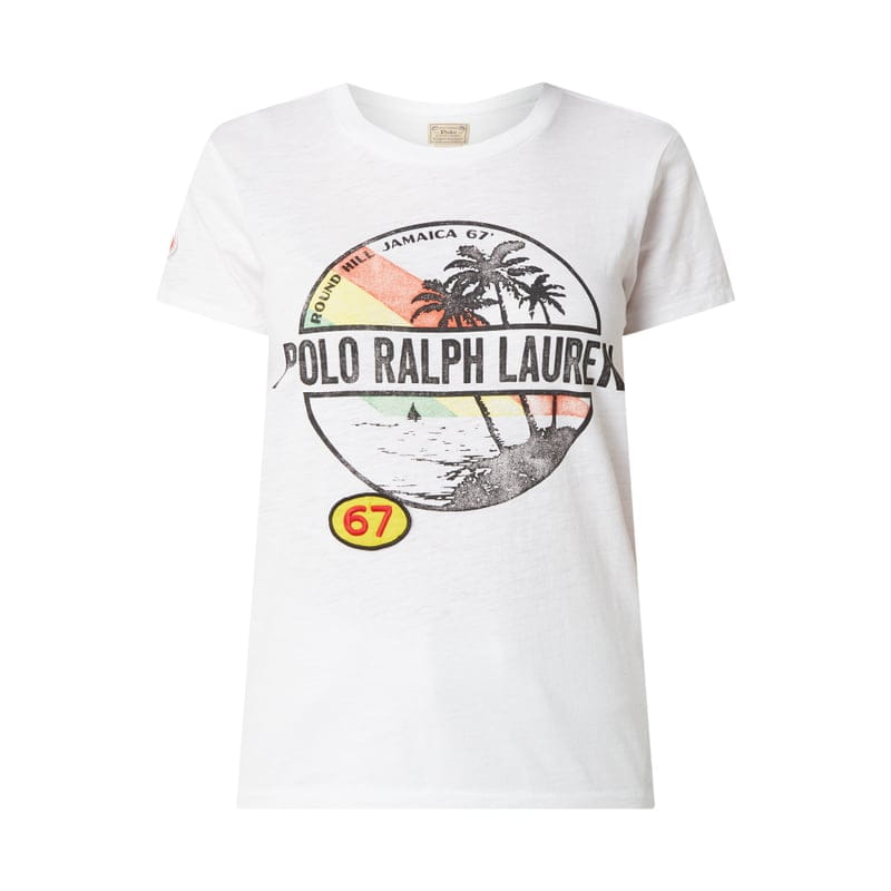 T-shirt damski Polo Ralph Lauren, Czysta bawełna , Prosty krój , Okrągły dekolt , Nadruk z motywem , Detal w kontrastowym kolorze, Długość tyłu w rozmiarze S: 61 cm