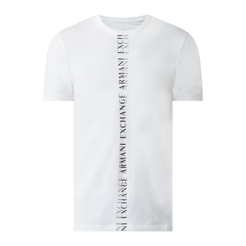 T-shirt męski Armani Exchange, Mieszanka bawełny i elastanu , Krój slim fit , Okrągły dekolt , Nadruki z logo, Długość tyłu w rozmiarze M: 70 cm