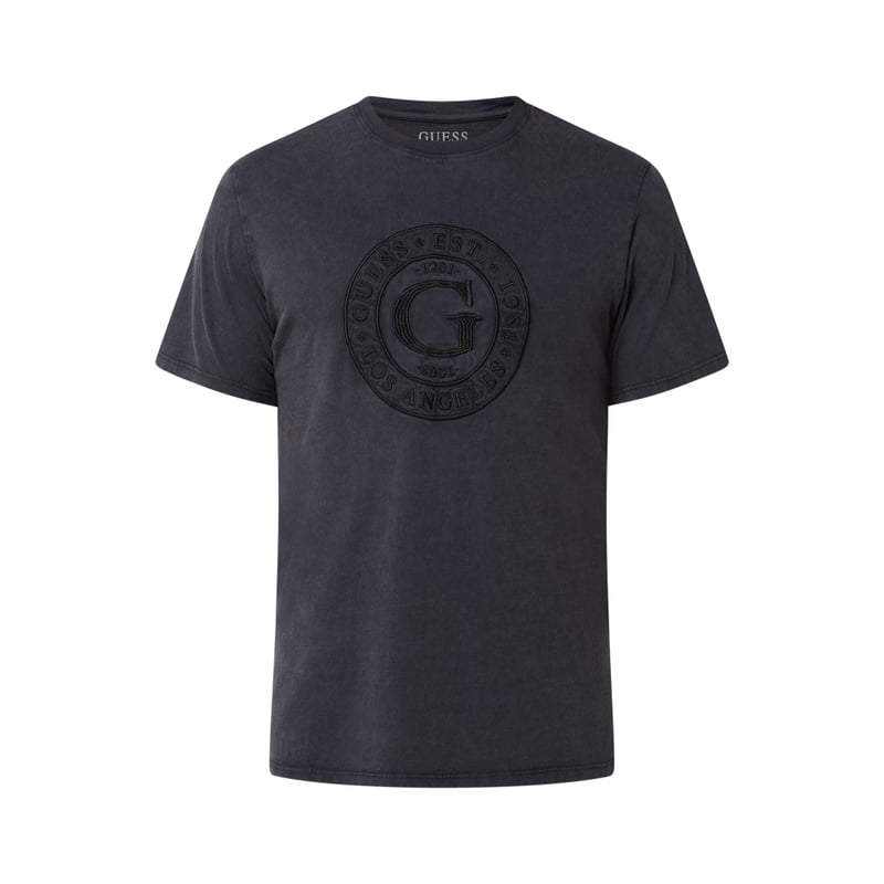 T-shirt męski GUESS, Czysta bawełna , Krój regular fit , Okrągły dekolt , Wyhaftowane logo , Długość tyłu w rozmiarze M: 70 cm