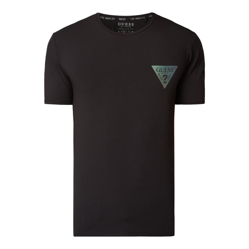 T-shirt męski GUESS, Mieszanka bawełny i elastanu, Prosty krój, Okrągły dekolt, Nadruk z logo , Długość tyłu w rozmiarze M: 57 cm