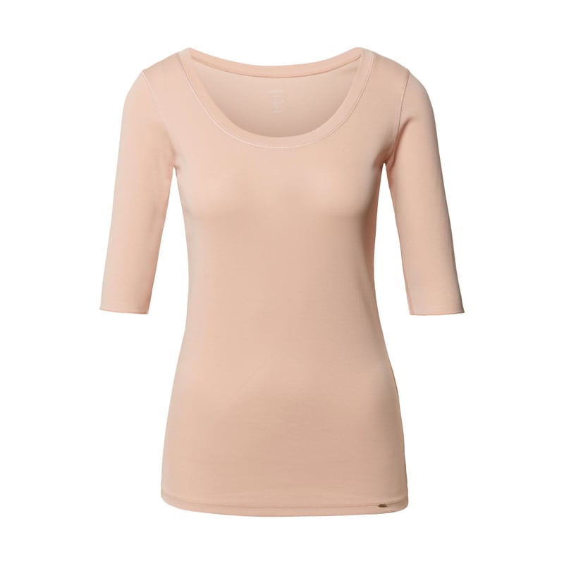 T-shirt damski Marc Cain, Mieszanka bawełny i elastanu, Prosty krój, Kolory uni, Okrągły dekolt, Długość tyłu w rozmiarze 36: 57 cm