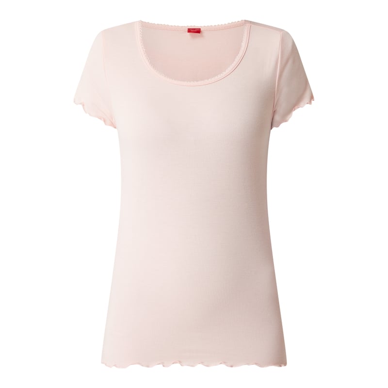 T-shirt damski s.Oliver RED LABEL, Mieszanka materiałów z dodatkiem wiskozy i streczu , Taliowany krój , Okrągły dekolt , Ozdobna tasiemka , Długość tyłu w rozmiarze S: 54,5 cm