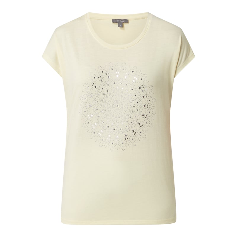 T-shirt damski MONTEGO, Mieszanka materiałów z dodatkiem wiskozy , Prosty krój , Okrągły dekolt , Ukośnie skrojone rękawy , Ozdobne kamienie , Długość tyłu w rozmiarze S: 60 cm