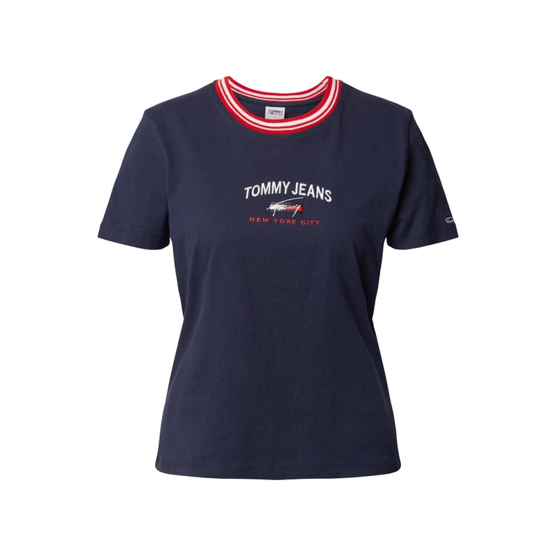 T-shirt damski Tommy Jeans, Czysta bawełna, Krój regular fit, Okrągły dekolt w paski, Wyhaftowane logo w kontrastowym kolorze, Długość tyłu w rozmiarze S: 55 cm