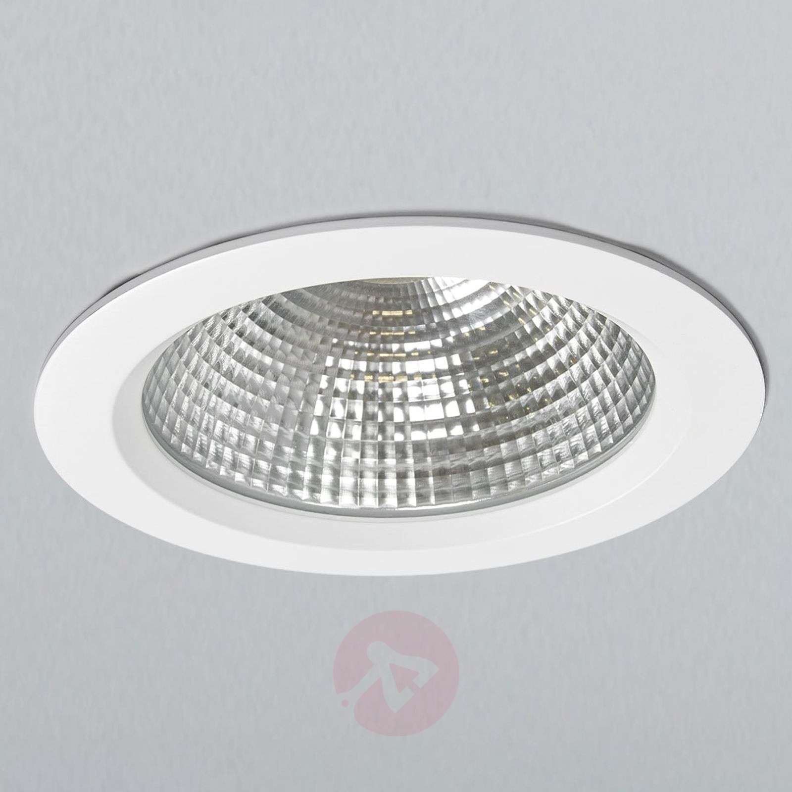 Biały reflektor wpuszczany LED Tadeus z okrągłą ramką, IP65 i możliwością podłączenia bez użycia narzędzi Do prywatnych wnętrz i lokali użytkowych - prosta stylistyka okrągłego, białego reflektora Tadeus czyni z niego uniwersalne narzędzie oświetleniowe. Stopień ochrony IP65 zabezpiecza oprawę wpuszczaną LED przed wnikaniem brudu i wody, co umożliwia jej zastosowanie w pomieszczeniach o podwyższonej wilgotności. Światło LED rozprzestrzenia się pod kątem 60 stopni zapewniając bardziej płaskie oświetlenie pomieszczenia. Bezśrubowy zacisk podłączeniowy umożliwia montaż lampy bez użycia narzędzi. Klasa efektywności energetycznej: A+