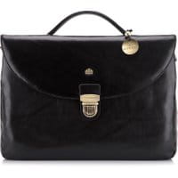 Teczka z kolekcji Arizona. Bardzo starannie i estetycznie, ręcznie wykonana z wytrzymałej, delikatnie połyskującej skóry cielęcej, logo - metalowa blaszka z herbem WITTCHEN w kolorze złotym. Wewnątrz: 5 komór, w tym 1 zamykana na suwak; 3 miejsca na długopisy; 4 miejsca na karty kredytowe; miejsce na telefon komórkowy; całość przykryta klapą blokowaną zamkiem na kluczyk. Dodatkowo: z tyłu kieszeń zamykana na suwak; odpinany, regulowany pasek.