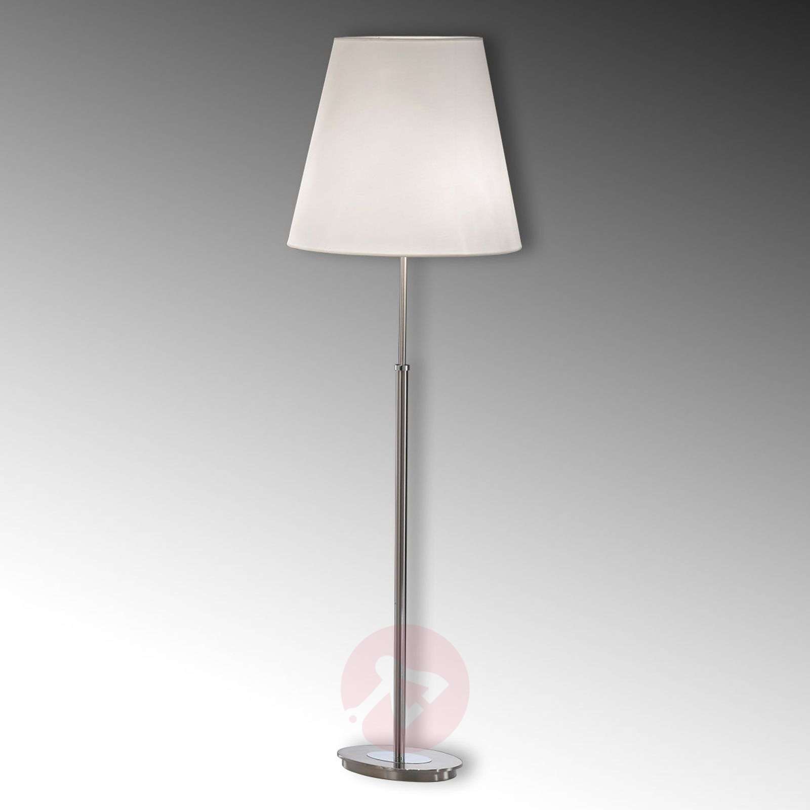 Klasyczna lampa stojąca LILLY z białym abażurem z materiału Lampy z serii LILLY zachwycają klasyczną elegancją oraz precyzyjnym wykonaniem z wysokiej jakości materiałów. Oprawa w niklowym kolorze doskonale współgra z abażurem z ogniotrwałego, białego materiału. Lampa ta jest wyposażona we włącznik/wyłącznik. Klasa efektywności energetycznej: A++