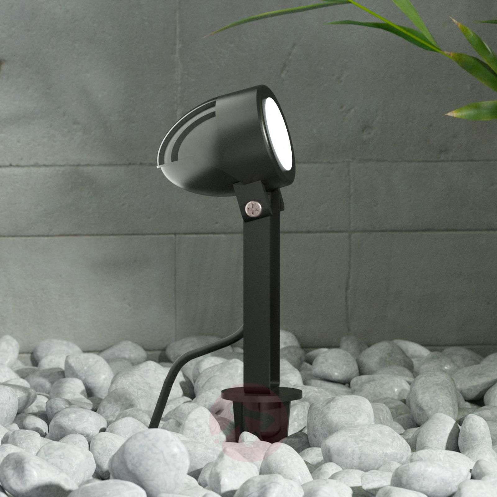 Reflektor z grotem ziemnym LED Timko z dużym kątem świecenia i stopniem ochrony IP65 Timko idealnie się nadaje do zapewniania pięknego oświetlenia obiektu w ogrodzie i wizualnego podkreślenia go. Kąt świecenia wynosi 100° i jest tym samym szczególnie duży. Obudowa reflektora jest czarna, a przy pomocy grota ziemnego można go bezpiecznie i mocno zakotwić w ziemi lub umieścić w dużej doniczce. 3-metrowy przewód reflektora z grotem ziemnym zakończony jest wtyczką Schuko, a stopień ochrony IP65 zapewnia najlepszą ochronę podczas użytkowania lampy na zewnątrz, dzięki czemu Timko może być bez problemu używana do oświetlania ogrodu. Klasa efektywności energetycznej: A+