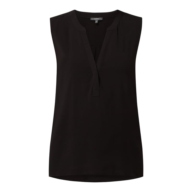 Top bluzkowy damski MONTEGO, Wiskoza z dodatkiem materiału z recyklingu, Prosty krój, Kołnierz z lamówką, Krótka listwa guzikowa z plisą , Długość tyłu w rozmiarze 36: 63 cm