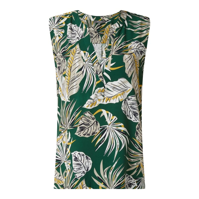 Top bluzkowy damski MONTEGO, Czysta wiskoza , Prosty krój , Wzór na całej powierzchni , Kołnierz z lamówką, Plisa z tyłu , Długość tyłu w rozmiarze 36: 63 cm