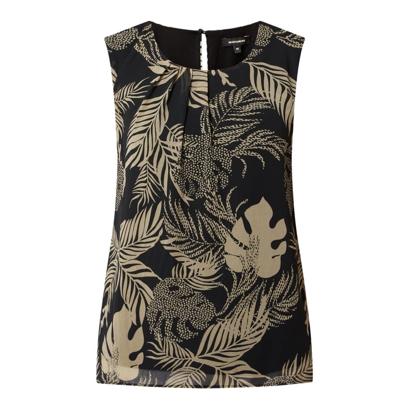 Top bluzkowy damski MORE & MORE, Lekki materiał , Prosty krój , Wzór na całej powierzchni , Okrągły dekolt , Szerokie ramiączka , Wycięcie w kształcie łezki zapinane na guzik z tyłu , Długość tyłu w rozmiarze 36: 60 cm