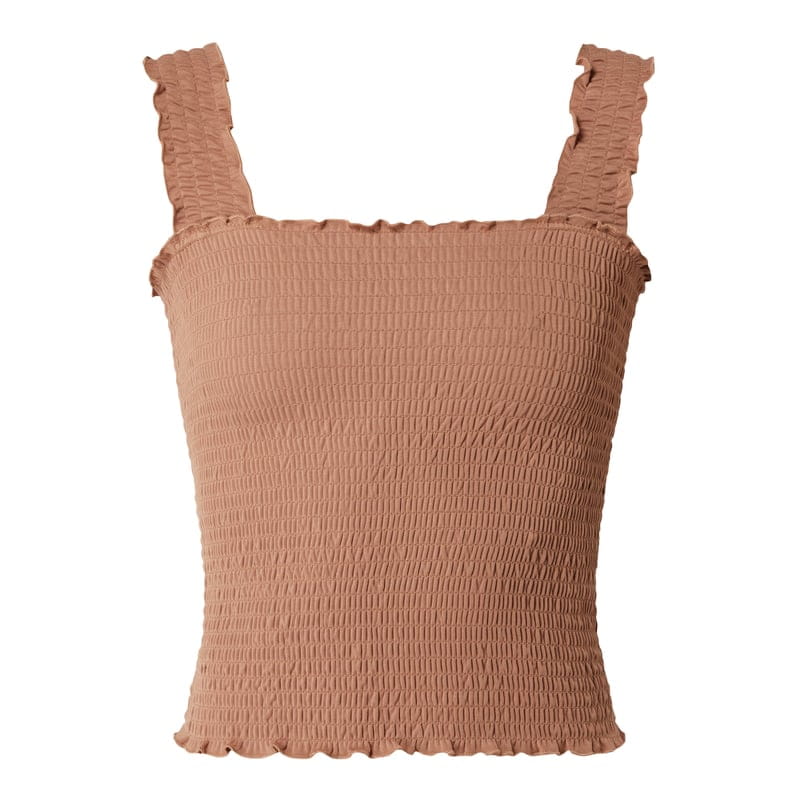 Krótki top damski REVIEW , Modal mieszany , Dopasowany krój , Marszczenie , Prostokątny dekolt , Długość tyłu w rozmiarze S: 42 cm