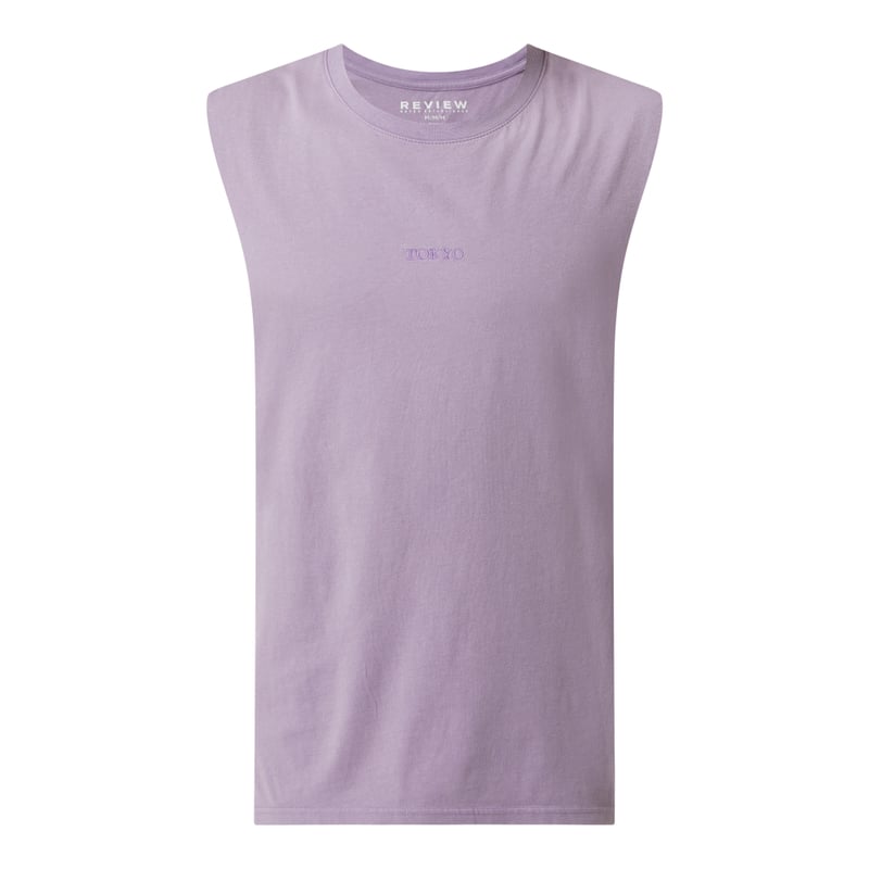 Top męski REVIEW, Czysta bawełna , Luźny krój, Okrągły dekolt , Wycięcie, Haft, Długość tyłu w rozmiarze M: 71 cm