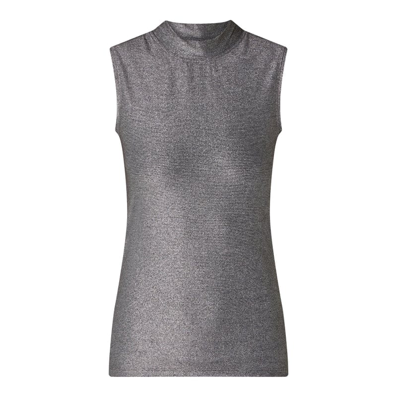 Top damski MONTEGO , Mieszanka materiałów z dodatkiem wiskozy i streczu , Dopasowany krój , Efekt błyszczący , Stójka , Długość tyłu w rozmiarze S: 62 cm