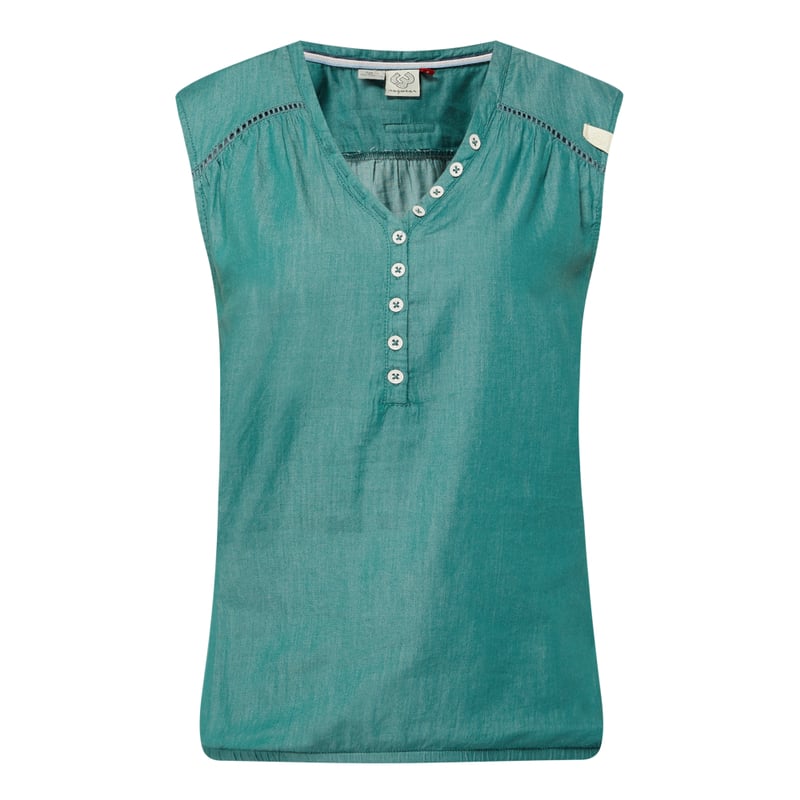 Top damski Ragwear, Mieszanka bawełny i wiskozy , Taliowany krój , Jeans , Dekolt z guzikami , Ozdobne tasiemki z koronki szydełkowej , Elastyczny dół , Logo , Długość tyłu w rozmiarze S: 61 cm