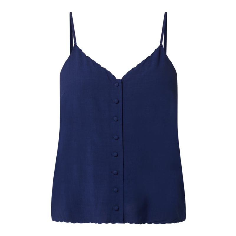 Top damski Superdry , Lekki materiał , Luźny krój, Dekolt w serek , Listwa guzikowa , Wąskie, regulowane ramiączka , Faliste wykończenie , Długość tyłu w rozmiarze S: 53 cm