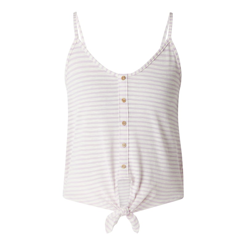 Top damski ONLY, Mieszanka bawełny, Taliowany krój, Wzór w paski, Okrągły dekolt, Ozdobna listwa guzikowa, Cienkie ramiączka, Wiązany detal na dole , Długość tyłu w rozmiarze S: 47 cm