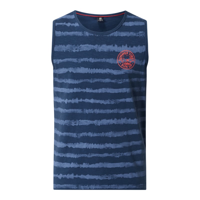Top męski LERROS, Czysta bawełna , Luźny krój , Wzór w paski , Okrągły dekolt , Nadruk z napisem , Długość tyłu w rozmiarze M: 68 cm