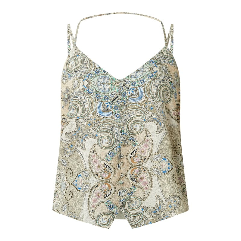 Top damski ONLY , Czysta wiskoza , Luźny krój , Wzór etno , Dekolt w serek , Wąskie, skrzyżowane ramiączka , Ozdobna listwa guzikowa, Długość tyłu w rozmiarze S: 50 cm
