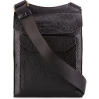 Torba z kolekcji City Leather. Wykonana z bydlęcej skóry tłoczonej przed garbowaniem. Wewnątrz: komora główna przedzielona na pół; 2 miejsca na karty kredytowe; kieszeń otwarta; całość przykryta klapą zamykaną na magnetyczne zapięcie. Dodatkowo: z przodu kieszeń zamykana na magnetyczne zapięcie; z tyłu kieszeń zamykana na suwak; regulowany pasek.