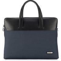 Granatowa torbana laptopa Office LeatherTorba na laptopa na skórzanych rączkach, którą po dopięciu długiego paska, można nosić również na ramieniu. Torba wykonana jest z najwyższej jakości nylonu i naturalnej skóry, wyróżnia się nowoczesnym designem orazszlachetnym połączeniem głębokiego granatu z czernią. Model spełni oczekiwania najbardziej wymagających użytkowników.Nasza rada: polecamy jakouzupełnieniem służbowego wizerunku. Wewnątrz: zamykana na suwak; komora główna mieszcząca urządzenie o wymiarach: 27 cm x 35 cm; kieszeń zamykana na suwak; miejsce na telefon komórkowy; otwarta kieszeń oraz otwarta kieszeń na drobiazgi. Dodatkowo: z tyłu kieszeń zamykana na magnetyczne zapięcie; do torby dołączony jest odpinany, regulowany pasek.