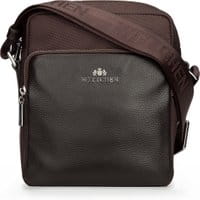 Brązowa listonoszka męska z kolekcji EleganceMęska listonoszka w kolorze średniego brązu. Model wykonany z połączenia skóry licowej i nylonu to miks szlachetności i elegancji z odpornością i funkcjonalnością, dlatego spełni oczekiwania każdego mężczyzny. Srebrne elementy doskonale prezentują się na jednolitym tle w odcieniu głębokiego brązu.Nasza rada: połączenie dwóch rodzajów materiałów daje interesujący efekt. zamykana na suwak; otwarta kieszeń oraz kieszeń zamykana na suwak; z przodu kieszeń zamykana na suwak; możliwość regulacji długości paska.