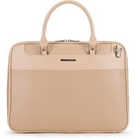 Torba na laptopa 15" z kolekcjiOfficePojemna torba biznesowa z odchylaną komorą zapewni łatwy dostęp do zawartości i poczucie ładu, który przecież jest tak niezwykle istotny przy pracy. Bardzo estetycznie wykonane akcesorium uszyto z najlepszej jakości, gładkiego poliuretanu, natomiast wnętrze obszyto czarną poliestrową podszewką ze wstawkami ze skóry ekologicznej na obszyciach kieszenii. Model występuje w dwóch neutralnych kolorach (beżowym orazszarym).Nasza rada:przy wyborze idealnej torby uważnie przyjrzyj się z pozoru nieistotnym detalom takim jak: zaokrąglone uchwyty, zapięcie, metalowe nóżki czy mocowania. Wewnątrz: komora główna zamykana na suwak; kieszeń mieszcząca laptopa o wymiarach 25 cm x 35 cm, zabezpieczona elastycznym paskiem zamykanym na rzep; pomieści format A4; kieszeń zamykana na suwak, otwarta kieszeń na drobiazgi oraz miejsce na telefon komórkowy. Dodatkowo: z tyłu kieszeń zamykana na suwak; podstawa zabezpieczona metalowymi nóżkami; do torby dołączono odpinany, regulowany pasek.
