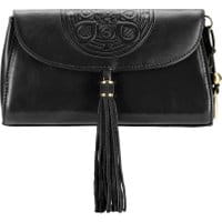 Torebka damska z kolekcji Mandala.Elegancka torebka damska wykonana ze skóry naturalnej najlepszej jakości. Model ozdobiony z przodu tłoczonym motywem mandali i ozdobnym chwostem. całość przykryta klapą zamykaną na magnetyczne zapięcie; wewnątrz kieszeń zamykana na suwak oraz otwarta kieszeń na drobiazgi; ponadto do torebki jest dołączony odpinany pasek.