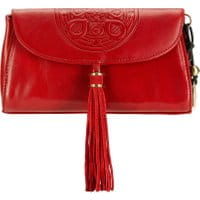 Torebka damska z kolekcji Mandala.Elegancka torebka damska wykonana ze skóry naturalnej najlepszej jakości. Model ozdobiony z przodu tłoczonym motywem mandali i ozdobnym chwostem. całość przykryta klapą zamykaną na magnetyczne zapięcie; wewnątrz kieszeń zamykana na suwak oraz otwarta kieszeń na drobiazgi; ponadto do torebki jest dołączony odpinany pasek.