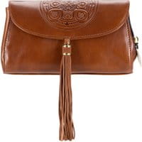 Torebka damska z kolekcji Mandala.Elegancka torebka damska wykonana ze skóry naturalnej najlepszej jakości. Model ozdobiony z przodu tłoczonym motywem mandali i ozdobnym chwostem. całość przykryta klapą zamykaną na magnetyczne zapięcie; wewnątrz kieszeń zamykana na suwak oraz otwarta kieszeń na drobiazgi; ponadto do torebki jest dołączony odpinany pasek.