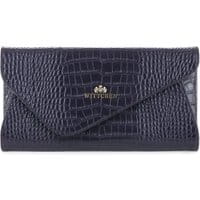 Torebka z kolekcji Croco Kopertówkawykonana ze skóry imitowanej na skórę krokodylabędzie doskonałym uzupełnieniem klasycznej, wieczorowej stylizacji. komora główna zamykana na magnetyczne zapięcie; wewnątrz: kieszeń zamykana na suwak, dwie otwarte kieszenie oraz sześć miejsc na karty kredytowe; dodatkowo odpinany, regulowany pasek.