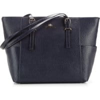 Torebka z kolekcji ElegancePraktyczna torebka damska typu shopper ze skóry licowej. Estetycznie wkomponowane w całokształt torebki boczne kieszenie dostarczają dodatkowe miejsce na przechowywanie ulubionych akcesoriów. komora główna zamykana na suwak; wewnątrz dwie kieszenie zamykane na suwak, otwarta kieszeń na drobiazgi oraz miejsce na telefon komórkowy; możliwość regulacji długości rączek; po bokach kieszeń zamykana na magnes; podstawa zabezpieczona metalowymi nóżkami.