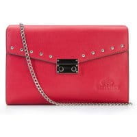 Torebka damskaz kolekcji EleganceMała torebka damska w kobiecym kolorze, wykonana z najwyższej jakości groszkowej skóry licowej. Dołączony do modelu łańcuszek oraz materiałowy pasek pozwalają na więcej możliwości stylizacyjnych. Mini torebka wyróżnia się efektownym wykończeniem: srebrnymi nitami oraz zapięciem. Model dostępny w trzech kolorach: czerwonym, różowym i fioletowym.Nasza rada: odepnij łańcuszek i doczep materiałowy pasek w trzech kolorach, a odmienisz charakter torebki z eleganckiego na bardziej sportowy. wykonana ze skóry licowej o lekko groszkowanej strukturze; całość przykryta klapą zamykaną na metalowe zapięcie; wewnątrz otwarta kieszeń na drobiazgi; do torebki dołączony jest odpinany, regulowany pasek oraz odpinany łańcuszek.
